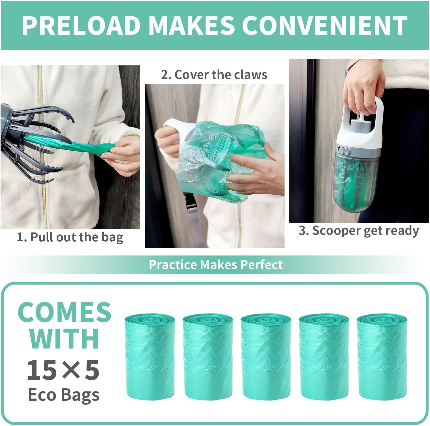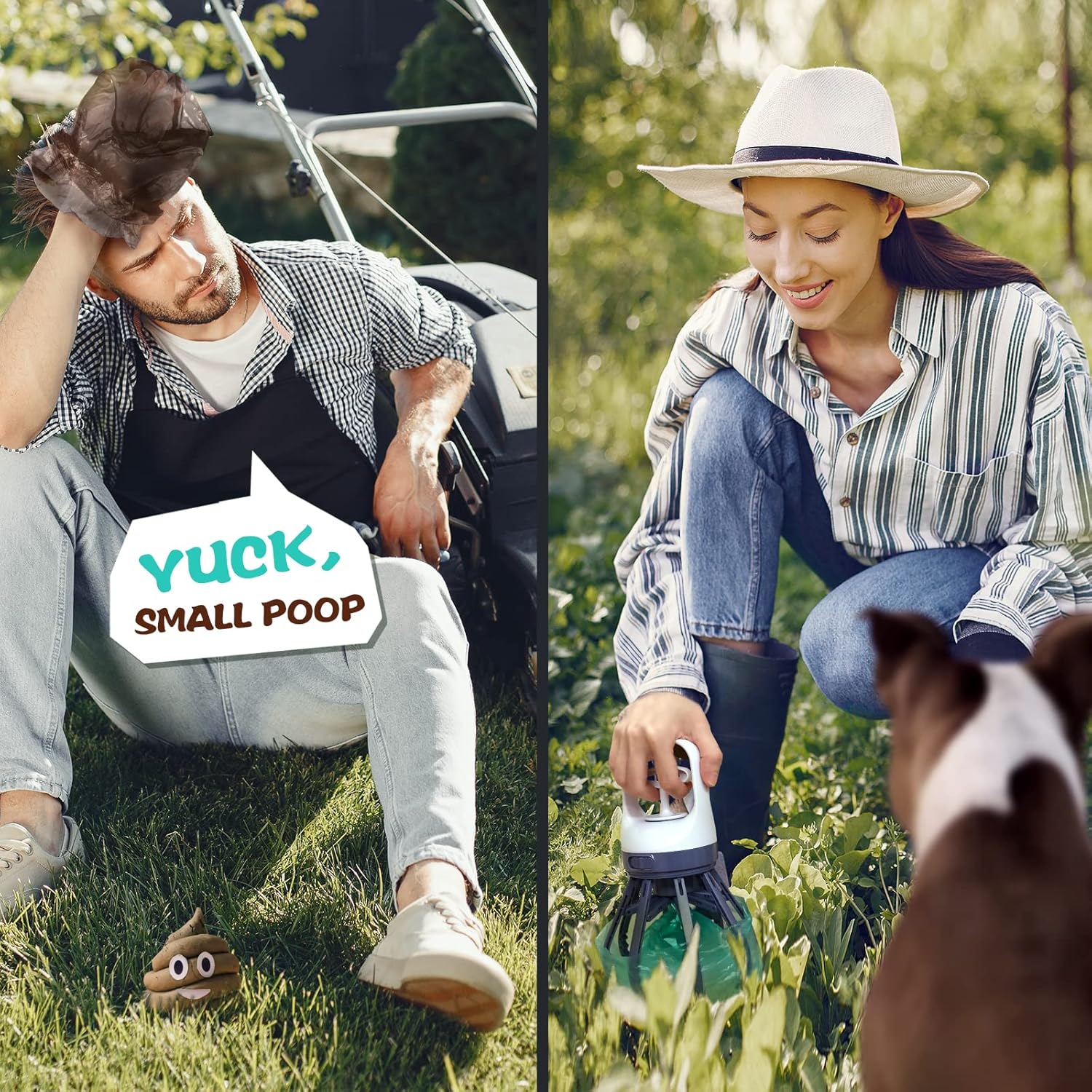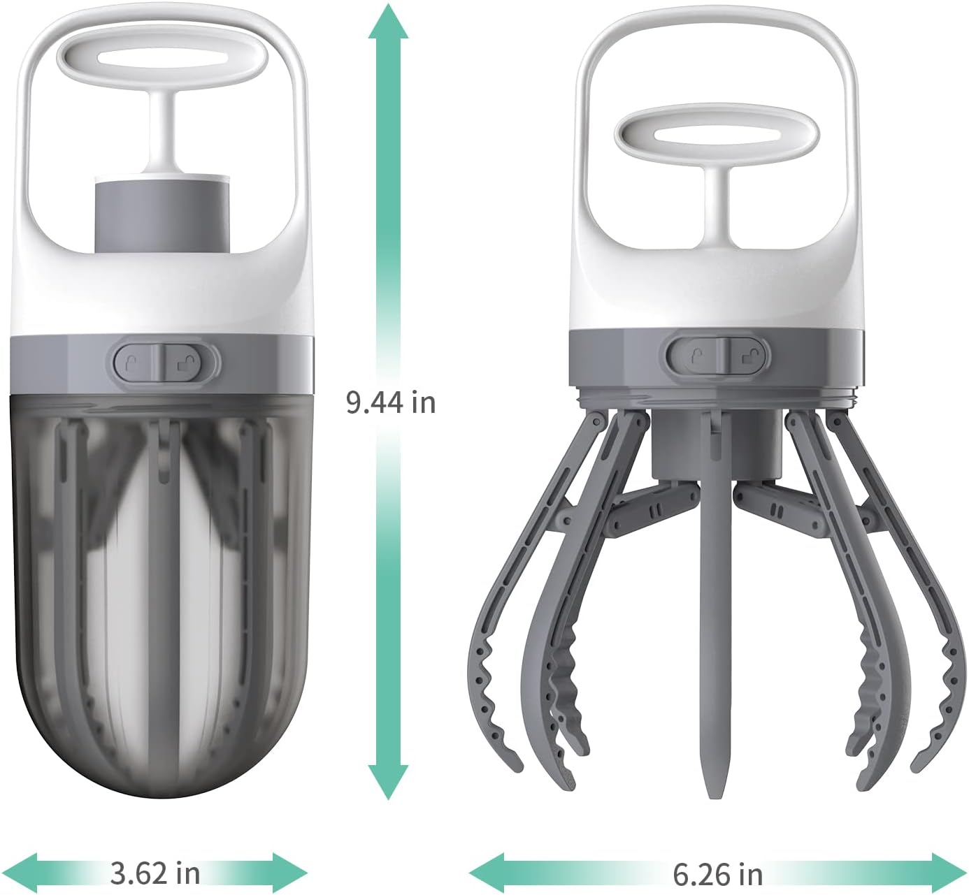 - 【Non-touch Pickup Claw】 with the 6 claws, you can easily get the poops in 360 degrees, the locking button provides double guarantee to prevent the poops from slipping away, catching all the poo with just a flick of a wrist, widely used in gravel, grass, concrete, yard and lawn.(tips: preloading the bag covers the claw before taking the poop scooper outdoors or the first time use, practice makes perfect)